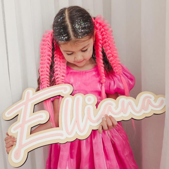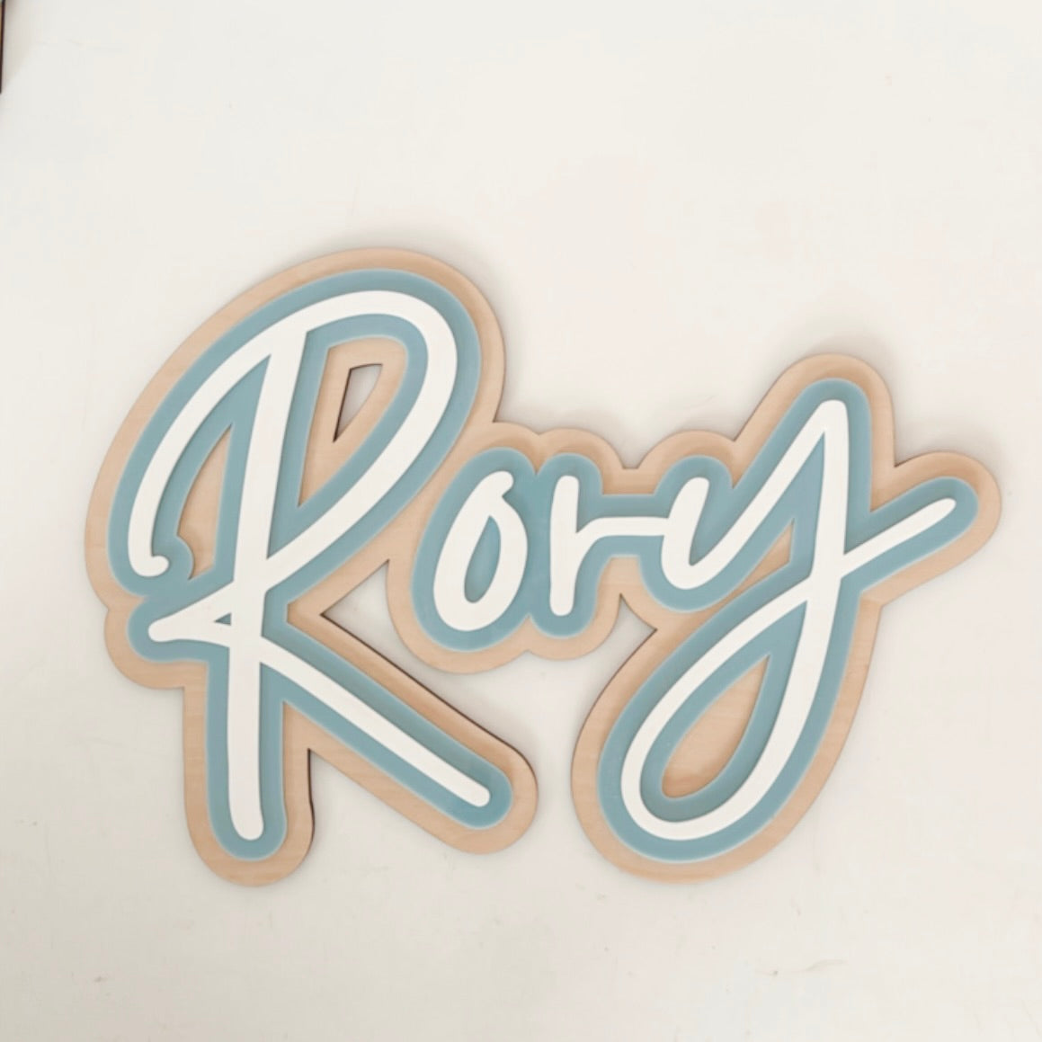 Our Triple layered name signs are a beautiful addition to any room in the house or for your next event. They are a true statement piece and on trend in kids bedrooms, nurseries, weddings and more. With a bold eye catching look, choose your acrylic colours with a middle wood layer and we'll do the rest, simply stunning!