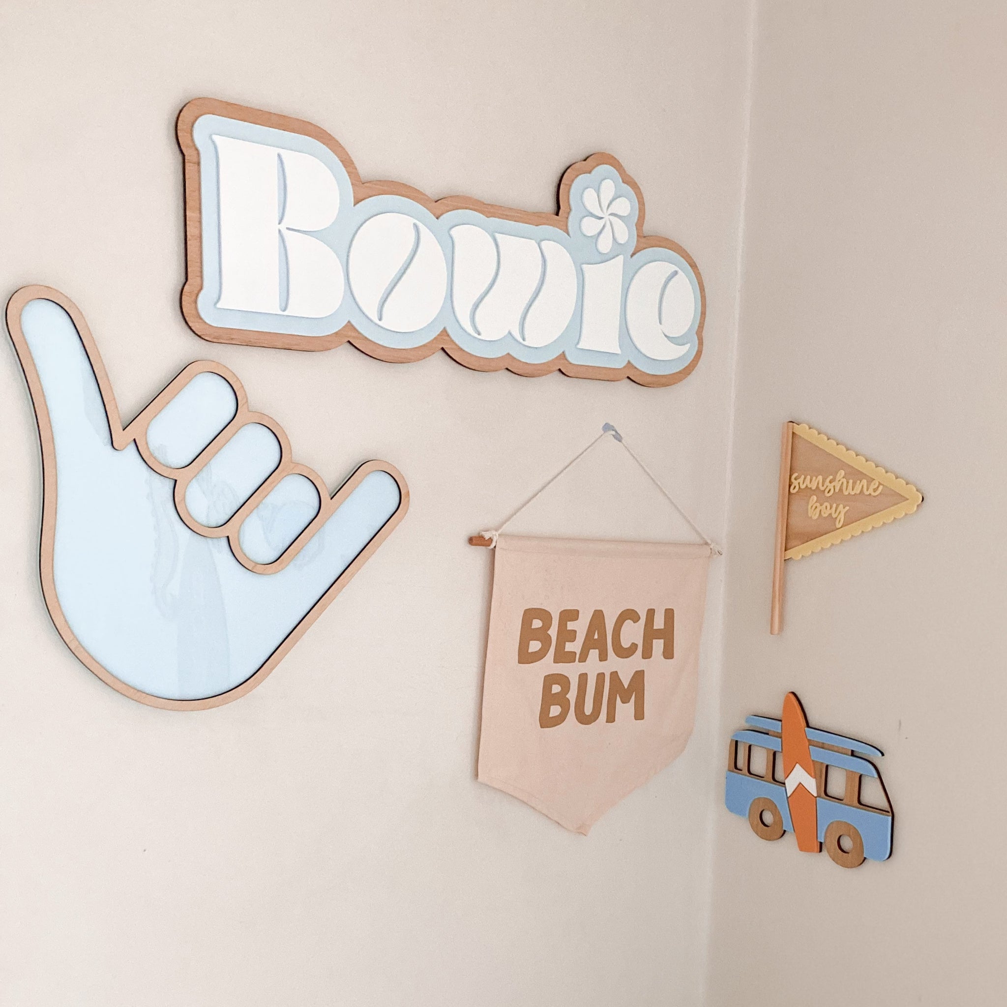 *Retro font is a particularly high font and therefore often reaches the hight cap (30cm) before the length in very short names. This font is best for longer names or if a short name (3-4 letters) it is recommended you choose a length size of 50cm or less. The photo is swirl font and works well in all sizes.